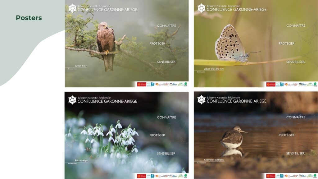 Mise en page de posters illustrant des espèces remarquables de la Réserve Naturelle Régionale Confluence Garonne Ariège pour l’association Nature en Occitanie.